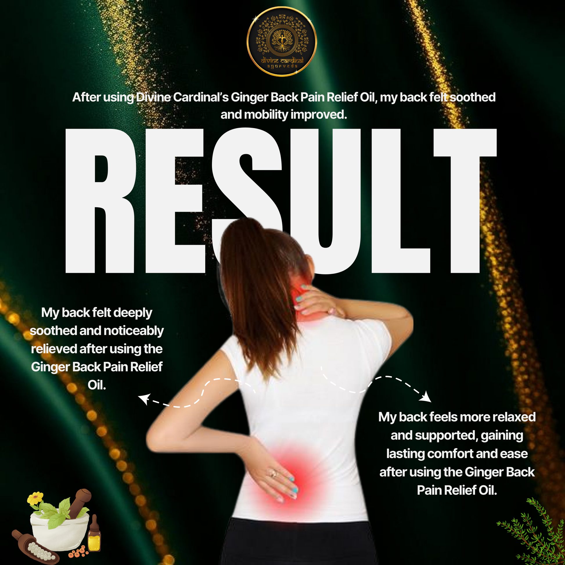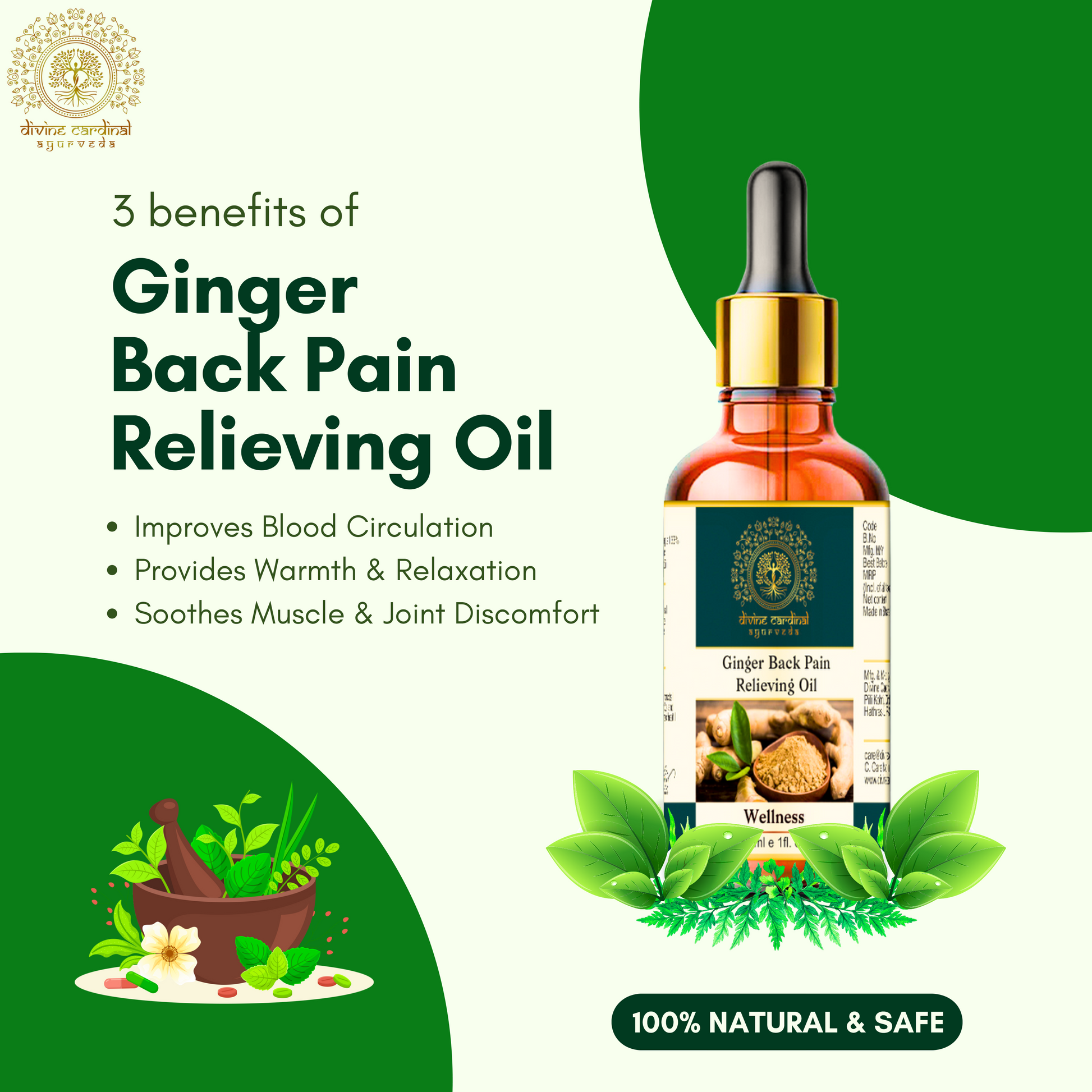 Divine Cardinal Ginger Back Pain Relieving Oil is a concentrated, natural formulation designed to ease lower and upper back pain, reduce muscle stiffness, and promote comfortable movement. Crafted from high‑quality ginger essential oil and supporting herbal botanicals, this oil delivers warming, circulation‑boosting relief that penetrates deeply to the source of discomfort. If you want a non‑pharmaceutical, plant‑based approach to manage back pain, muscle soreness, or joint stiffness, this blend is made to help.